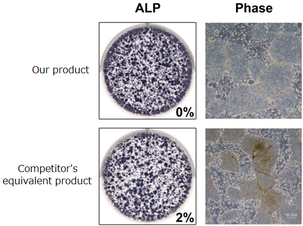 StemSure® on-feeder hPSC medium is a liquid medium used for culturing human ES/ iPS cells on feeder cells. Little preparation is needed as it is a pre-mixed medium that contains the basal medium, serum replacements, non-essential amino acids, and reducing agents. bFGF should be added prior to use as it is not contained in the mixture.