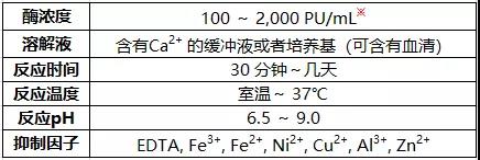 ※ 1PU 的定义是使用酪蛋白分解法1分钟内分离1微克酪氨酸的酶活性。