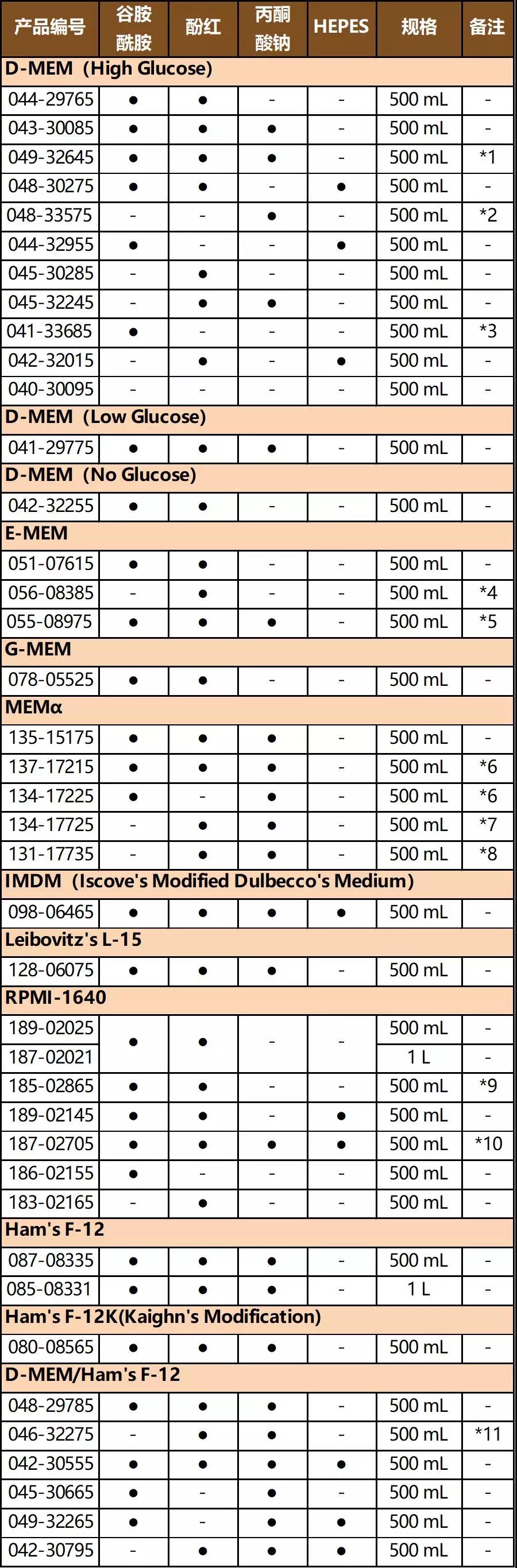 FUJIFILM Wako可提供D-MEM、 E-MEM、 RPMI-1640等基础培养基。产品已过滤除菌,请回温至37℃左右后直接使用。