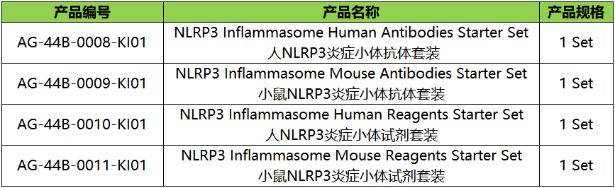 AdipoGen Life Sciences新推出的NLRP3炎症小体抗体和试剂入门套装,是用于Western blotting研究人或小鼠细胞中NLRP3炎症小体的一体化解决方案。该入门套装由针对NLRP3炎症小体关键组分(包含NLRP3、Asc和Caspase-1)的基因敲除(KO)验证的标准抗体组成。