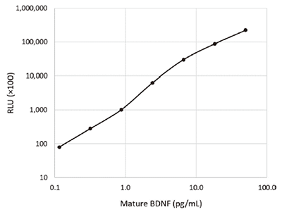 本试剂盒使用mBDNF的N端断面特异性单克隆抗体与BDNF单克隆抗体组合而成的夹心法ELISA。通过使用Mature BDNF的N端断面识别抗体,抑制与proBDNF的交叉反应性,并使用发光底物提高了灵敏度。