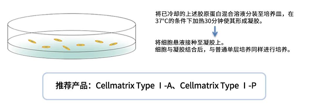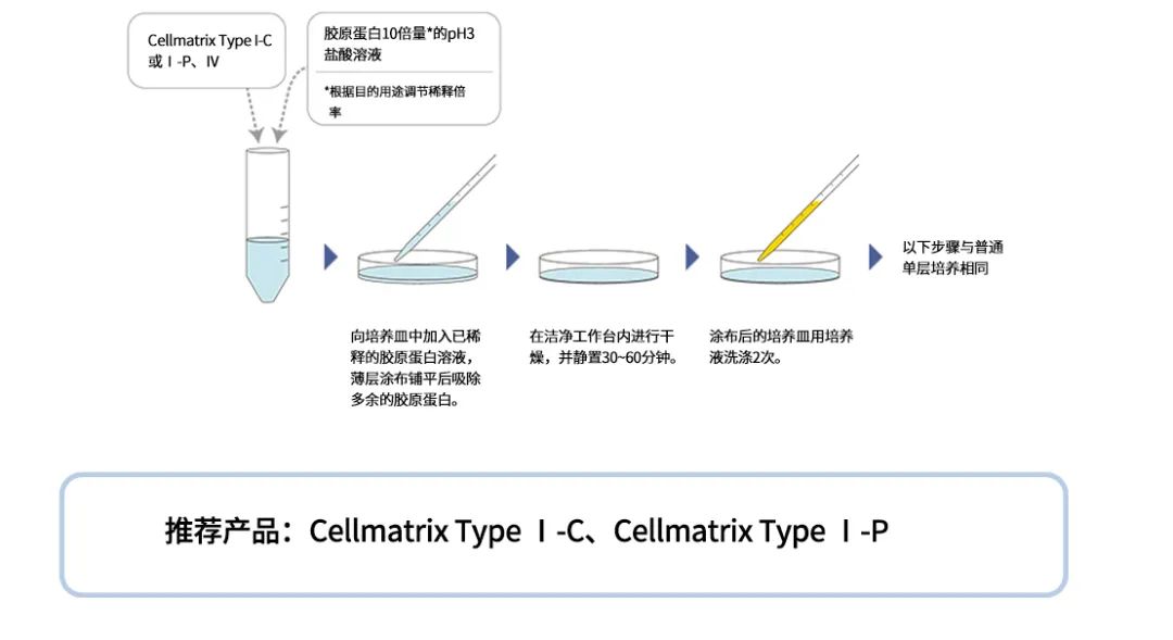 将胶原蛋白分子置于已涂布的培养基质上进行细胞培养的方法。此方法在改善细胞粘附性以及通过与胶原蛋白分子接触从而激活细胞内的信号传导方面备受期待。