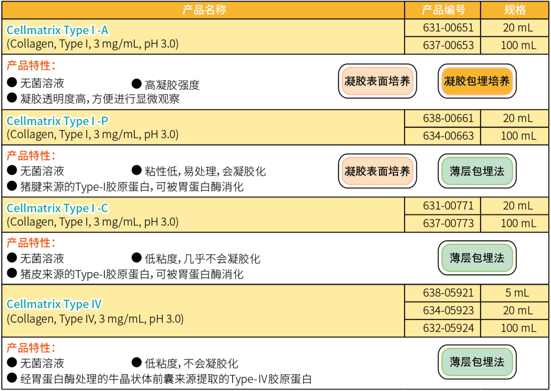 ● Cellmatrix Type Ⅰ-A优化了凝胶速度和透明度,适用于3D细胞培养的产品。