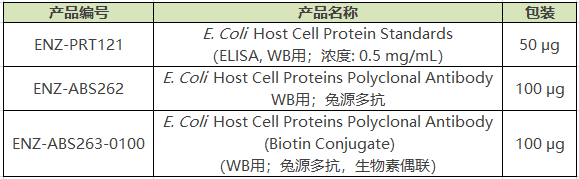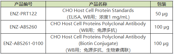 生物制药常以细胞培养表达系统来生产和纯化,会产生内源蛋白形式的污染,即宿主细胞蛋白(Host Cell Proteins,HCP)。HCP杂质可引发免疫反应,因此必须尽量控制生物制品中的污染并在进行监测。Enzo提供高灵敏的ELISA试剂盒,用于检测以CHO,E. Coli 和HEK293T表达系统生产的生物制品中的HCP。