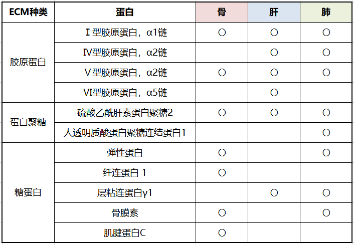 IN SITE™ Metastasis kit各组织特异性ECM成分: