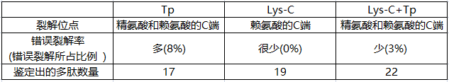 表 1:Tp、Lys-C和Lys-C+Tp的结果对照