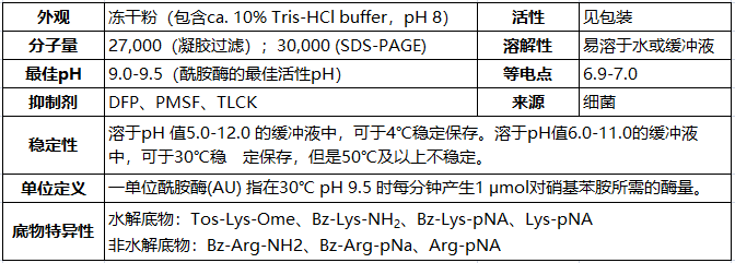 不可水解底物——Bz-Arg-NH2,Bz-Arg-pNA,Arg-pNA