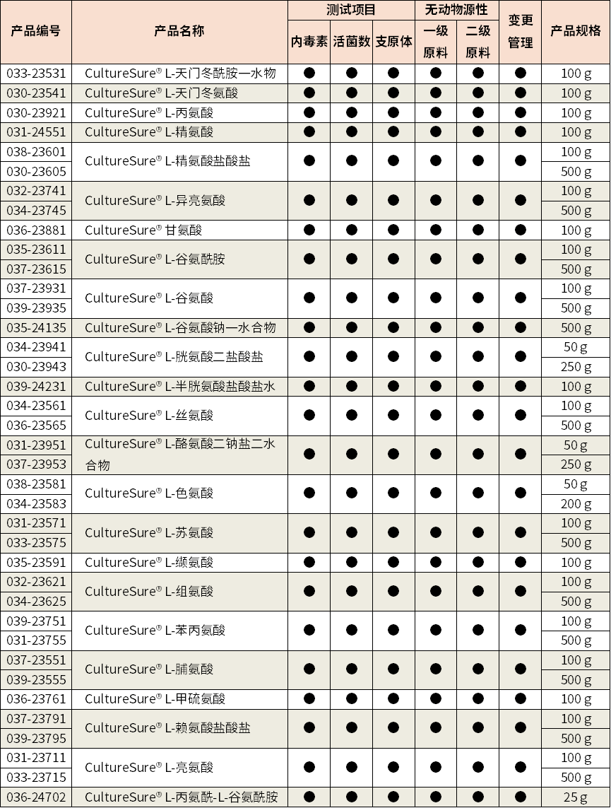 另外,CultureSure® 还实施了变更管理,是能够放心使用的培养基添加剂系列。