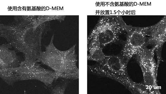细胞自噬研究用D-MEM 细胞自噬主要由营养饥饿引起。本产品是不含氨基酸的低营养培养基。将培养基换成本产品,能够使细胞处于饥饿状态。除了氨基酸,其他成分与 D-MEM 相同,比使用 HBSS、EBSS、D-PBS 效果更好,能够促进细胞自噬作用。 ◆测试项目 ● 无菌测试 ● pH ● 渗透压 ● 内毒素 ● 支原体测试 ◆组成表 ◆案例 培养生成 GFP-LC3 的小鼠成纤维细胞时,将培养基换成本产品,放置 1.5 小时后,可以通过 GFP-LC3 的标识看到大量的细胞发生了自噬。 (资料提供:东京大学医学系研究科分子生物学领域 本田 郁子 老师、水島 昇 老师) ◆产品列表 ※ 仅供实验研究用,不可用于临床诊断。 Prev Next