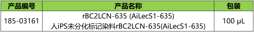 可特异性识别未分化细胞的重组凝集素,使用Cy5荧光染料将rBC2LCN标记。rBC2LCN是来源于洋葱伯克霍尔德菌(Burkholderia cenocepacia),BC2L-C的N末端结构域在大肠杆菌中表达的重组凝集素。BC2LCN可特异性识别存在于人ES·iPS细胞表面的糖链。本产品已进行荧光标记,使用合适的浓度与ES·iPS细胞混合,即可在活细胞状态下进行分析。另外,即使在与本产品共存的条件下持续培养数天,也未发现有细胞毒性。本产品可用于细胞染色、流式细胞术(激发波长=634 nm,发射波长=654 nm)。