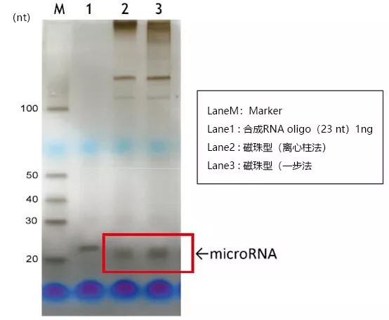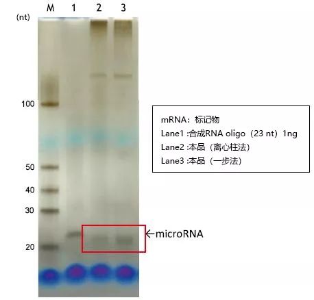 图1. 对从人K562细胞中提取的microRNA的进行银染检测