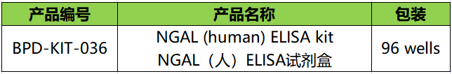 其中,中性粒细胞明胶酶相关脂质运载蛋白(NGAL,lipocalin-2,siderocalin)是一种 25 kDa 的小蛋白,在全身上皮组织中表达。其可作为肾损伤标志物,当肾小管损伤后,NGAL 可从患者的尿液和血液中检出。