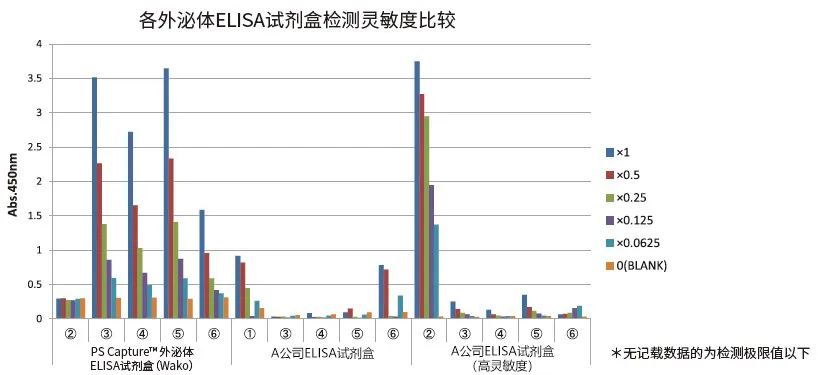 制备下列①~⑥的样品,比较用PS Capture™ 外泌体ELISA试剂盒、A公司ELISA试剂盒、A公司ELISA试剂盒(高灵敏型)检测外泌体标记蛋白CD63时的灵敏度。
