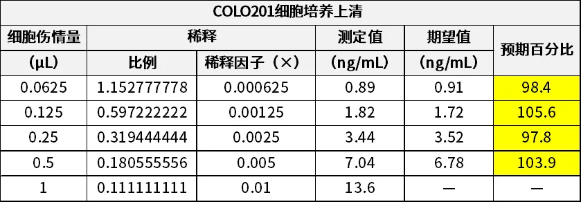 ● 检测样品:COLO201细胞培养上清(25倍稀释)