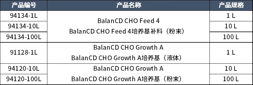 ● 营养丰富的补料培养基,提高生产效率、促进细胞生长