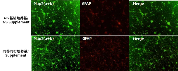 ●观察到培养8天后的细胞形态、培养14天后的神经细胞标记(Map2(a+b))以及胶质细胞标记(GFAP)。