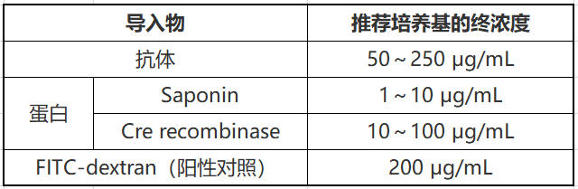 ※导入效率根据细胞类型,细胞数量和蛋白类型各种因素改变。以上数据仅供参考,建议每次实验都要优化数据。