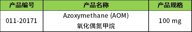 本产品可强效诱发小鼠、大鼠的结肠癌,作为建立结肠癌模型的试剂而广泛用于癌症预防物质的探索以及癌症引发机理的研究。随着对结肠癌的担忧不断增加,人们越发积极地探索癌症预防物质,因此本产品所起的作用非常重要。本产品的平均给药量为每周一次皮下注射大鼠15 mg/kg(体重),持续约3周,随后检测到异常隐窝灶(ACF)。