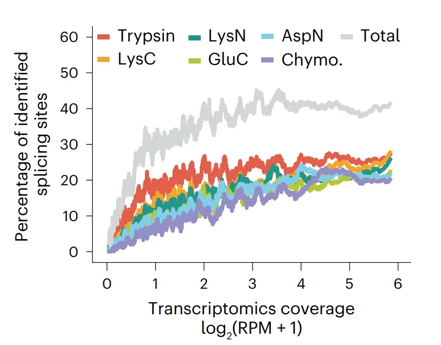 图2. 所有蛋白酶组合对可变剪接位点的鉴定数