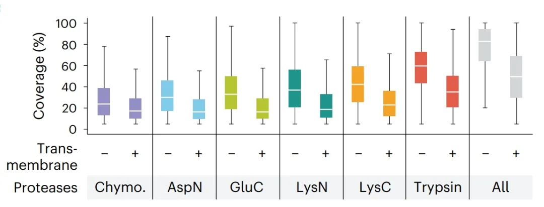 图3. 跨膜蛋白与非跨膜蛋白的序列覆盖度对比