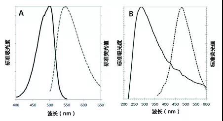 Hoechst33342(图B)在1X测定缓冲液来确定的吸光度和荧光图谱(350 /461 nm)。